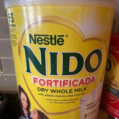 - One 56.4 oz (approximately 53 servings) canister of Nestle NIDO Fortificada Dry Whole Milk Powdered Drink Mix