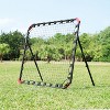 Net Playz Soccer Simple Kickback Trainer is extremely fun and great for practicing various soccer skills! This item is very easy to setup and take down as it folds over to ensure easy storagThis item's patented design allows the user to setup and breakdown in less than 90 seconds! This item sizes out at 4ft x 4ft and is made with a very durable squared construction along with a heavy-duty 1.5" metal tube to support training on all levels of play.