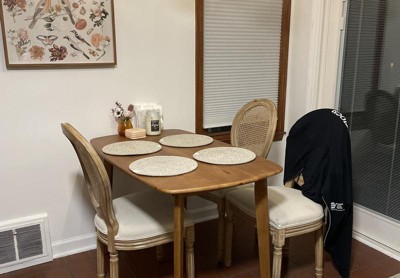 This table is pictured with 2 chairs on one side, unless its children sized chairs two chairs will not fit. The wood is smooth beautiful and rich looking, assembly is a piece of cake. But it is extremely TINY. If I had a tiny TINY home, an Airbnb or something like a bedroom that functions as a suite yes but anything outside of that unless you want something super tiny for you and a child or you and another person in like a bistro set up like idea it is not big at all so I returned it and I got penalized because I signed up for the target debit card before Christmas so I earned the right to have a $50 Promo sent to me with the debit card and because I returned it after Christmas well after Christmas I was penalized and I did not qualify for the $50 promo so I canceled the Debit Card close the account and I’m done with Target