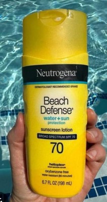 - Neutrogena Beach Defense fast-absorbing body sunscreen lotion with Broad Spectrum SPF 70