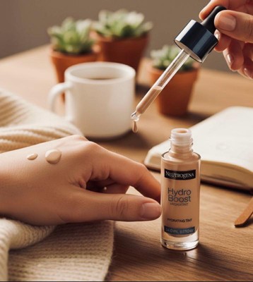 Neutrogena Hydro Boost Hydrating Tint enhances skin hydration while leaving complexion looking more even with a smooth texture and a fresh, natural finish. Designed specifically for dry skin, this liquid foundation contains hyaluronic acid—known for its ability to retain moisture—for 24-hour hydration. The water-gel formula glides on smoothly to refresh and plump thirsty skin, leaving it soft and healthy-looking. Lightweight and oil-free, this tint is non-comedogenic so it won’t clog pores. It offers sheer-to-medium coverage without the cakey feel of traditional foundations. Available in 10 blendable shades, it’s ideal for daily wear and integrates seamlessly into any skincare or makeup routine. With a boost of hydration and skin-loving ingredients, this foundation works double duty as a makeup product and hydrating skincare solution.