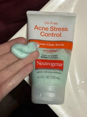 Pimple. Its face. Tons of pores. Finish in one tube! Neutrogena Acne Stress Control Power-Clear Scrub Reduce acne since not popping! with Salicylic Acid + Fine Textured Scrub Gentle Formula, No Dry Face, No Clogs