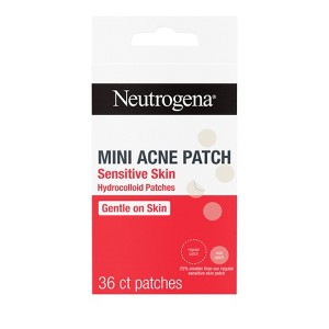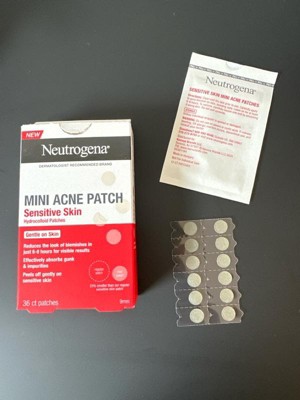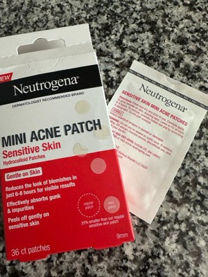 Shink the look of blemishes in just 6-8 hours with Neutrogena Sensitive Skin Mini Acne Patches. Designed for sensitive skin, these hydrocolloid patches from Neutrogena, a dermatologist recom-mended brand, create an optimal healing environment that works to help visibly reduce the size of blemishes, make mature pimples appear smaller, and absorb gunk and impurities from the skin. Designed for smaller breakout areas, these non-medicated, peel-off patches are gentle on the skin and suitable for all skin types, including sensitive skin. To use, cleanse, and fully dry the skin. Remove the backing of the patch and place directly on to the acne blemish. The facial patch starts to turn white after it absorbs fluid; peel off when the hydrocolloid patch turns white or after 6-8 hour of application. Avoid using other topical skincare products before application, use moisturizer after facial patch is applied.