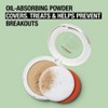 - The oil-absorbing pressed powder contains minerals that mattify to help control shine