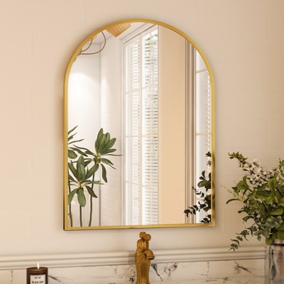 Introducing our Metal Frame Arched Bathroom Vanity Hanging Mirror (Set of 2), which not only enhances the elegant style of your bathroom, but also ensures durability and safety. The metal frame of each mirror features a rust-resistant design to ensure long-lasting beauty. The minimalist design style makes it easy to incorporate into a variety of bathroom décor, while the mirrors feature shatterproof safety technology for the safety of you and your family. The high-quality mirror provides a clear reflection that will last for years to come. Combining elegant design, durable materials and superior safety features, it delivers both beauty and peace of mind.