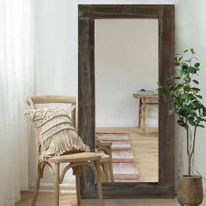 Introducing our Farmhouse Style Full-Length Mirror, featuring a wooden frame that embodies rustic charm and authenticity. The wide and sturdy design, along with the genuine wood grain decorations, adds a touch of farmhouse elegance to any space. This versatile mirror comes with hooks on the backside, allowing for easy wall-mounting or leaning against the wall. The high-definition glass ensures a clear and detailed reflection, while its shatterproof construction prioritizes safety.