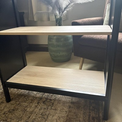 - Black wood accent cabinet helps enhance your space's style and functionality