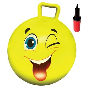 - Bounce, Bounce, Bounce - The handles on the yellow bounce ball are durable and easy to grip. The smiley face makes the ball all more exciting.