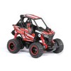 New Bright 1:43 scale full function Polaris Pro is a great radio control ATV packed with features and sharp driving. Features include working lights, 2.4GHz hand grip transmitter, ramp accessory, full function driving, and digital proportional speed control. The Polaris Pro comes equipped with a USB charging cable for easy charging accessibility. Connect up to six vehicles with 2.4 GHz Technology and race interference free.