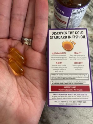 [This review was collected as part of a promotion.] I take fish oil daily. I’ve read really great things about New Chapter supplements and I liked these fish oil supplements. I felt they were effective and met my needs. However, they are really big pills which I don’t love - that’s the reason for 4 stars. I do better with smaller pills. I like the product and the ingredients and would recommend but I wish they were smaller.
