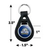 - QUALITY MATERIAL: Our durable round keychain is crafted from leather with a glossy resin-topped emblem featured design shown on one side. Approximately 1.5" (3.8cm) x 2.5" (6.4cm) in overall size, emblem is 1" (2.5cm)..