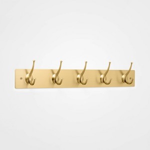 New Traditional 5 Hooks Rail Gold - Threshold™: Wall Mounted Decorative Hook Rack, Light Gold, Zinc Alloy, 40lb Capacity