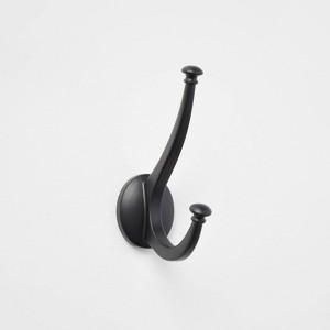New Traditional Double Hook Matte Black - Threshold™: Wall Hook, Zinc Alloy, 15 lb Capacity, Decorative Towel Hook - 1 of 3