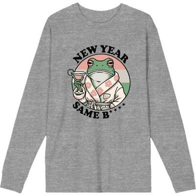 New Year, Same B**** Frog With Cocktail Adult Heather Gray Long Sleeve Hoodie-3XL