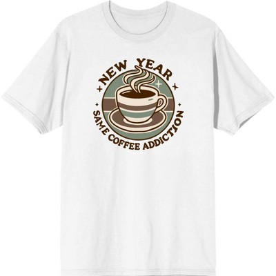 New Year, Same Coffee Addiction Adult White Crew Neck Long Sleeve Tee-Large