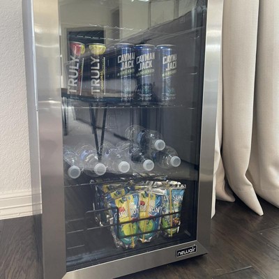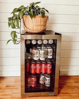 Newair 100 Can Beverage Fridge with Glass Door, Small Freestanding Mini Fridge in Stainless Steel, Compact Drinks Cooler, Single Zone Bar Refrigerator