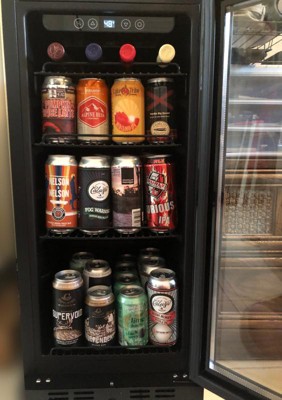 This can fridge became a welcome addition to the office collection of beverage coolers, but the NewAir 15" Built-in 96 Can Beverage Fridge quickly became my favorite because of its sleek design and how quickly it can get cans to the preset temperature. The lock becomes a convenient way to keep anyone out that shouldn't be in.The shelves are easily adjustable and the configuration is flexible. There is enough room for 12oz cans, 16oz cans, and some 375mL bottles of mead, too.