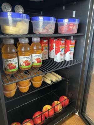 We are using this as a snack and beverage fridge for our kiddo and our life just got a whole lot easier! It's the perfect height and size for her and the door opens so easily. As you can see, this thing can hold 160 cans which means there is tons and tons of room. The fact that it is a free standing fridge is awesome, because we can put it pretty much anywhere. I also love that the shelves are easily removable to make cleaning a breeze.