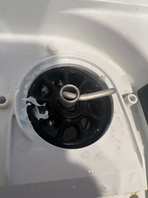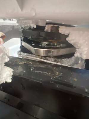 It started leaking water … so I took it apart to see if just a line can loose! Nope the part that makes the ice sherd the Allan bolts and Chewd up the top plastic and bent motor! 7 months old