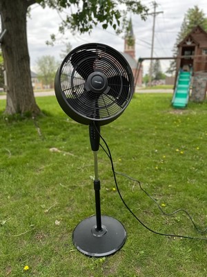 This misting fan is so awesome! Right now it's not hot enough to use outside so we've just been using it as a powerful fan to dry out our basement after recent rain storms. That alone makes it worth the price; it's SO strong and the oscillating feature is exactly what we need. This summer, I plan to lay outside in my hammock and turn the misting fan on to keep cool while also cooling my yard! It's also going to be great to have a strong fan to use in the evenings to ward off mosquitoes. Overall, I LOVE this fan!