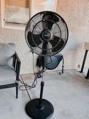Newair Outdoor Misting Fan and Pedestal Fan in Black, Cools 500 sq. ft. with 3 Fan Speeds and Wide-Angle Oscillation