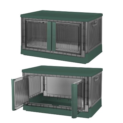 NewHome"2Pcs 32L Foldable Storage Bins with Lid, Stackable Closet Organizer, Locking Front Door & Wheels"Green&White