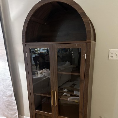 NEWLAYOUT 71" Tall Wooden Cabinet Arched Storage Cabinet with 2 Doors and Shelves for Living Room, Black