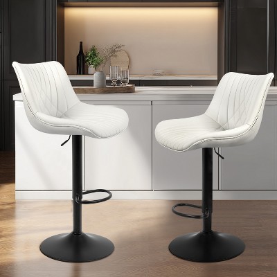 NEWLAYOUT Counter Height Bar Stools Set of 2, 24" Height Barstools for Dining Room, Upholstered Bar Chair for Kitchen Island, White