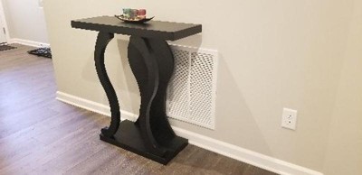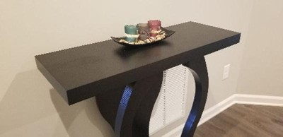 This console table is very nice. I have it in espresso color and it looks fabulous. I'm using it against a narrow wall between the living room window and the dining room sliding door, but it could also be used in the entryway with a nice mirror or behind a love seat as a decorative piece. It is pretty sturdy.