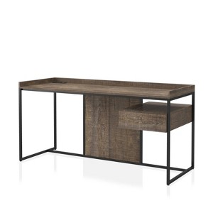 Whether you want an industrial or urban style home office, this desk offers just what you need. A built-in power strip serves a tech-friendly workplace while the drawer on smooth ball-bearing glides seconds as a shelf. The matte black steel frame can either present a light gray or rustic oak finish.