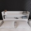 The storage headboard combines practicality and modern design with two shelves for extra storage without compromising precious square footage. It has carefully crafted shelves for easy access to books or electronics. This bed seamlessly blends style and functionality, creating an elegant and efficient bedroom with a perfect balance of form and function. Crafted from high quality materials, this headboard is sure to stand the test of time while solving your bedroom storage needs. Add to your bedroom space with this stylish storage headboard. Headboard dimensions: 55.25 in W x 9.5 in D x 40 in H