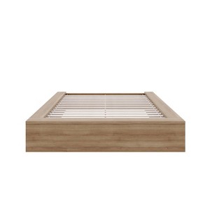 - Sleek Minimalist Design: Natural blonde oak platform bed frame crafted from engineered wood for contemporary elegance