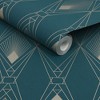 A full roll of this product is 20.5 inches wide and 396 inches long. A full roll can cover up to 56 square feet depending on the design match and pattern repeat. A sample of this product is 8 inches by 11 inches. Deco Geometric is an art deco geometric wallpaper design that oozes style and luxury. The bold teal background topped with a full metallic soft gold print creates a statement design that is sure to transform any living space. This elegant design is printed on a fibrous paper that adds subtle texture and dimension. Offers a smooth, untextured finish. Straight match with 12.6 inch pattern repeat.