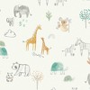 A full roll of this product is 20.5 inches wide and 396 inches long. A full roll can cover up to 56 square feet depending on the design match and pattern repeat. A sample of this product is 8 inches by 11 inches. Dream Safari is adorably cute, featuring handpainted/drawn style safari and zoo animals such as elephants, giraffe's, zebra's and many more. In a soft pastel color palette of Turquosie, orange and grey, displayed with a watercolour-like effect. This matte finish wallpaper would make for a beautiful addition to your child's nursery, bedroom or playroom. Offers a smooth, untextured finish. Straight match with 20.5 in pattern repeat.