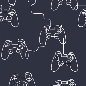 A full roll of this product is 20.5 inches wide and 396 inches long. A full roll can cover up to 56 square feet depending on the design match and pattern repeat. A sample of this product is 8 inches by 11 inches. Gamer Doodle Navy is a gorgeous contemporary collaboration of styles. Featuring a single line inspired game controller design in white laid upon a dark navy backdrop, for that fun child friendly design, but in an adult friendly aesthetic. Making this matte finish wallpaper an all around crowd pleaser. Offers a smooth, untextured finish. Straight match with 20.8 in pattern repeat.