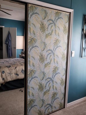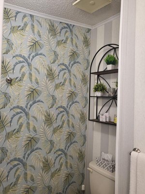 A full roll of this product is 20.5 inches wide and 396 inches long. A full roll can cover up to 56 square feet depending on the design match and pattern repeat. A sample of this product is 8 inches by 11 inches. Add a tropical touch to your interiors with the Jungle Leaves wallpaper. An array of tropical leaves in tones of neutrals, deep blues and sage greens sit upon a soft duck egg backdrop. Turn your home into a tropical oasis with this matte, paste the wall wallpaper. Offers a smooth, untextured finish. Straight match with 20.9 inch pattern repeat.