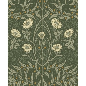 NextWall Stenciled Floral Peel and Stick Wallpaper Green: Vintage Botanical Vinyl, Self-Adhesive, Repositionable, 30.75 Sq Ft Coverage