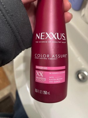 The Science of Healthy Hair™ Long Lasting Vibrancy XX Protein Fusion™ 0% Sulfates & Silicones With Elastin Protein and Quinoa Nexxus formulas restore and protect the 4 signs of healthy hair. Moisture Strength Shine Elasticity Proteinfusion™ Blend with: Elastin Protein & Quinoa. Nexxus Color Assure™ Anti-Fade System strengthens the core of the hair while gently cleansing and protecting color, to retain vibrancy for up to 40 washes.