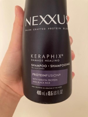 - POWERFUL PROTEIN INFUSION: Visibly heal signs of hair damage with Nexxus Keraphix Shampoo for Damaged Hair. The first step of Nexxus’ keratin hair treatment that brings the salon experience home.