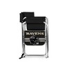 Show your team spirit year round - the Sports Chair with Side Table is the last and greatest portable outdoor folding chair you’ll ever need. With classic lines and modern touches, this smart travel chair is made of durable polyester canvas on a foldable and lightweight aluminum frame. Features abound on this lawn and picnic-ready directors chair with padded seat and armrests, fold-out side table, hanging arm rest caddy for holding books & magazines, two insulated beverage pockets, and a variety of additional pockets for extras. Grab-and-go with the underseat carrying handles or use the adjustable, detachable shoulder strap for longer treks to the campsite, the beach, or across the stadium. This outdoor camping chair is ideal for camping, picnicking, concerts in the park, or watching your favorite sport comfortably from the sidelines. Adorned with your favorite team logo on the back of the chair and a decorated tabletop no one will mistake who you're cheering for this season.