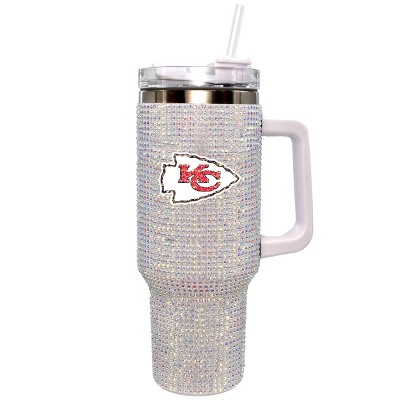 Keep hydrated with this 40oz bling colossal tumbler. Support your team all day, all year long. Stainless steel in white with your teams logo. It is sure to become an everyday fan favorite!