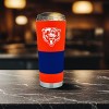 The Draft Tumbler is 24 fluid ounces. The Draft Tumbler is made of 18/8 kitchen grade stainless steel, is vacuum insulated and powder coated in a beautiful finish. Includes a silicone grip and clear acrylic lid. The draft tumbler is not recommended for dish washer but hand washed instead.