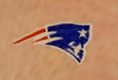 [This review was collected as part of a promotion.] My husband & I are huge NE Patriots fans, and my husband is considering getting a tattoo of their logo. This is a nice way to get the effect before making the commitment! The markers work really well & saturate the skin with the ink nicely, and the design definitely stayed on my skin longer that I expected. It comes with two stencils of the team’s logo, which is great, but they are stickers, so that makes reusing them tricky - if at all possible.