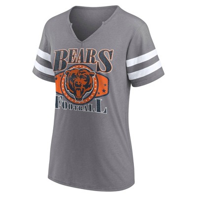 NFL Chicago Bears Women's Gray Short Sleeve Split Neck T-Shirt