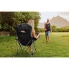 Plush, portable, and packable, the Picnic Time Reclining Camp Chair is your camping cockpit with three reclining positions, an extra-wide, padded polyester seat and armrests, an insulated drink holder, a zippered pocket, and a sturdy steel frame that folds inward to fit in a drawstring carrying bag with carrying strap. Show off your team spirit everywhere you go with this chair, adorned with your favorite team's logo across the back. This folding outdoor portable chair is the perfect place to post up for camping, picnicking, tailgating, or at the beach.
