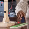 Channel the spirit of your favorite NFL team and immerse yourself in electrifying head-to-head battles with our NFL Licensed Tabletop Ring Swing Battle Game. Compete fiercely to shift the line-of-scrimmage by deftly hooking your ring onto the tower before your opponent in a frenetic and fast-paced game of skill. With each successful hook, advance your peg closer to your opponent’s endzone, but hurry up because your opponent is working to move the peg towards yours! Crafted with premium wood materials, this ring toss game guarantees superior quality and durability, ensuring countless gaming sessions filled with excitement. Easy to play yet challenging to master, this game is the perfect addition to family gatherings, parties, and game nights alike. Measuring less than 20 inches, its portable design allows you to bring the exhilarating competition of ring swinging to any occasion, from lively parties to spirited tailgates and casual hangouts.