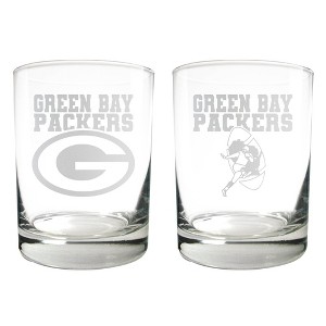 NFL Green Bay Packers Rocks Glass Set - 2pc: Double Old-Fashioned Glasses, 14oz Capacity