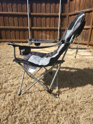 [This review was collected as part of a promotion.] I got this reclining camp chair and love it! It is so comfortable. There is padding in the seat and backrest. I like that I can adjust the backrest to recline and it is super easy to adjust. There are also straps on the back to adjust the armrest as well. I can actually lay back in comfort in this chair. There is a removable storage pouch on the back to hold items you may need. The chair feels nice and sturdy and it will last a long time.