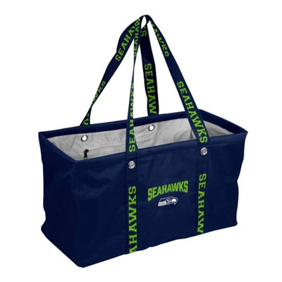 The Picnic Caddy is an innovative and stylish solution for transporting your essentials to any gathering while showing off your team spirit. This multipurpose, oversized tote features your favorite team's colors and logo. Its construction includes a sturdy bottom and wire top frame. The open top makes it easy to pack and find items. The caddy has reinforced handles with grommets that allow you to carry heavy loads, including sporting equipment or groceries, and it folds flat for easy storage. An interior zipper pocket helps you keep track of small items like bottle openers and car keys. This will be your go-to tote when packing for a tailgate, camping, the beach, the pool or any outdoor activity.