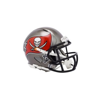Based on one of the most popular on-field designs, this collectible Speed Mini football helmet is made specifically for fans of the Tampa Bay Buccaneers. At approx. 5 in. tall, this half-scale display helmet is perfect for all football fans and great for autographs. The helmet features a mini size Speed shell, the S2BD-SW-SP face mask, a 4-point chinstrap, and official paint and decals. The perfect collectible or gift!